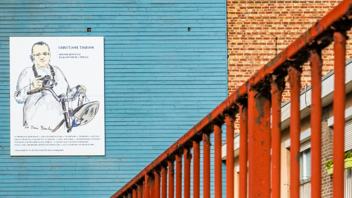 Un collectif d’habitants du quartier de l’Epeule a rendu hommage à Christiane Thirion, connue pour son engagement bénévole dans le quartier, et décédée en mai 2024. Un portrait d’elle a été réalisé par l’illustratrice roubaisienne Lucie Massart.