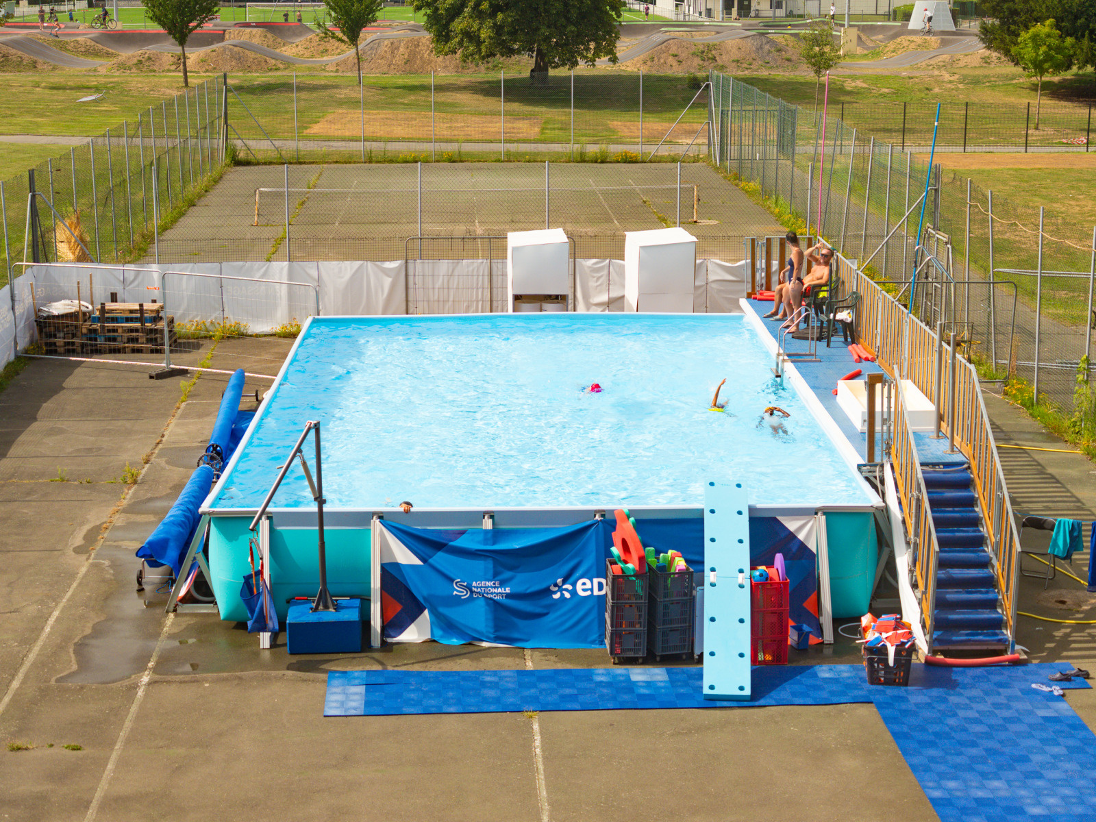 Le bassin éphémère d’apprentissage installé au Parc des sports dans le cadre des Rendez-vous de l’été ne désemplit pas ! Chaque jour, des dizaines d’enfants, préalablement inscrits suivent des séances de 30 ou 45 minutes en compagnie de maitres-nageurs diplômés.